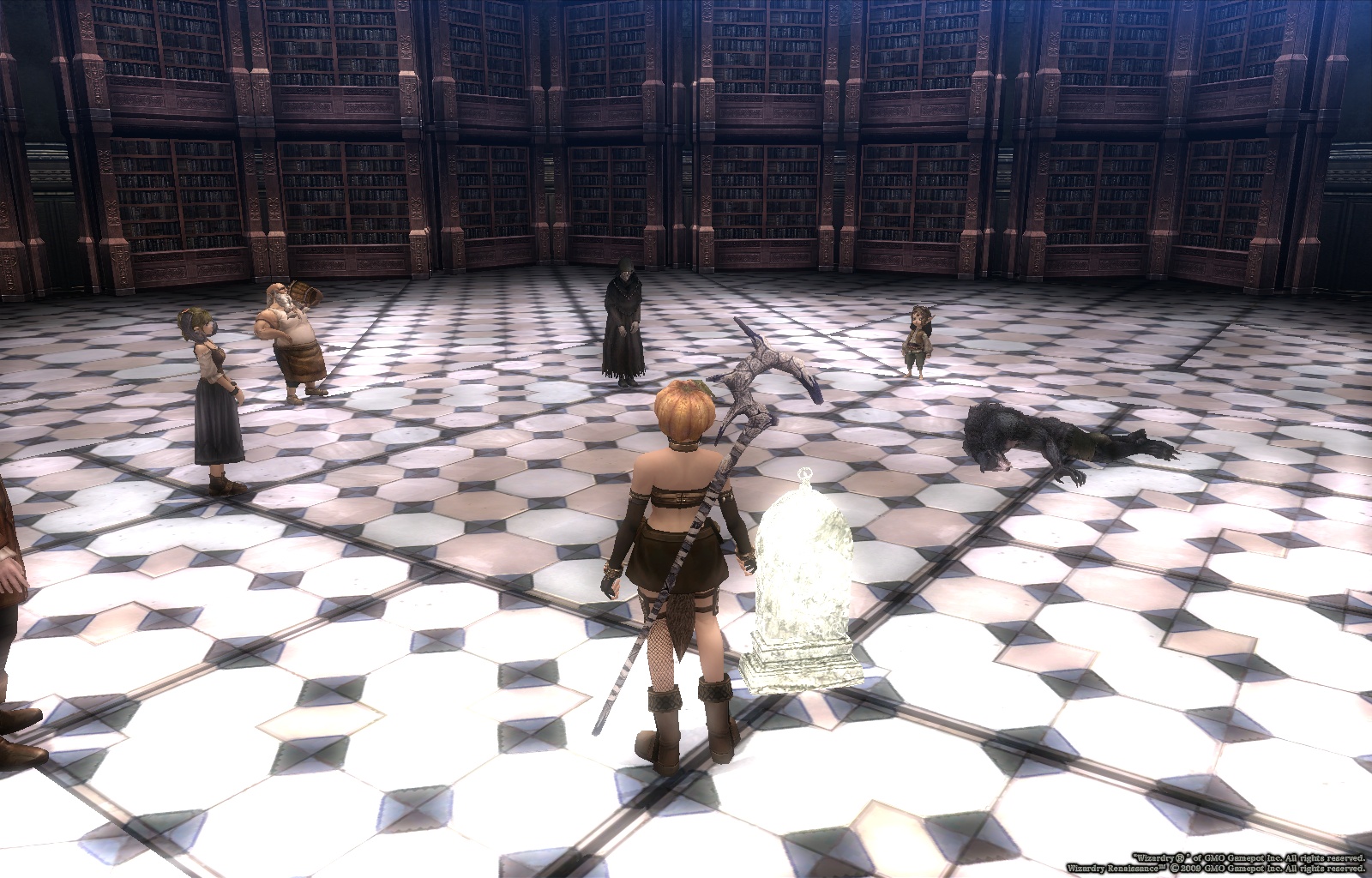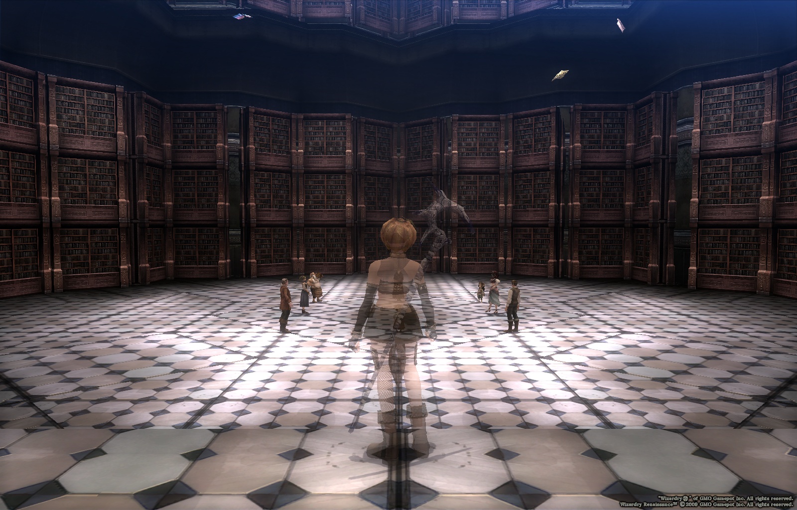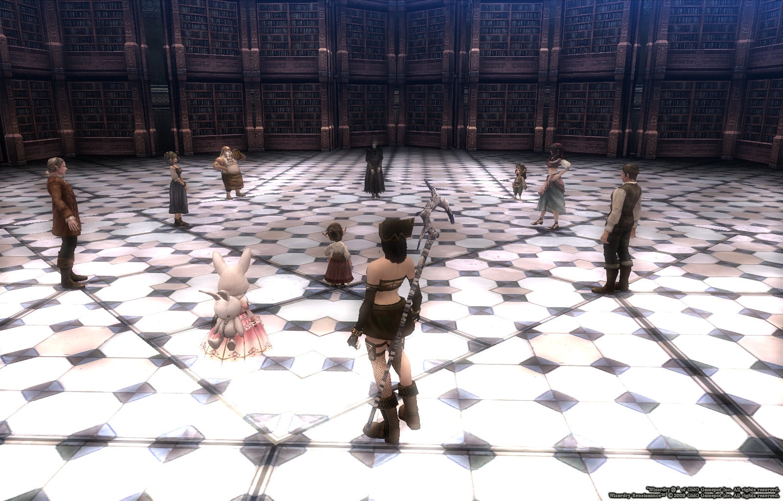 人狼の館内部はこんな感じ。大学の決戦場ですね。本がたくさんあって、しかも本が飛んでます。
