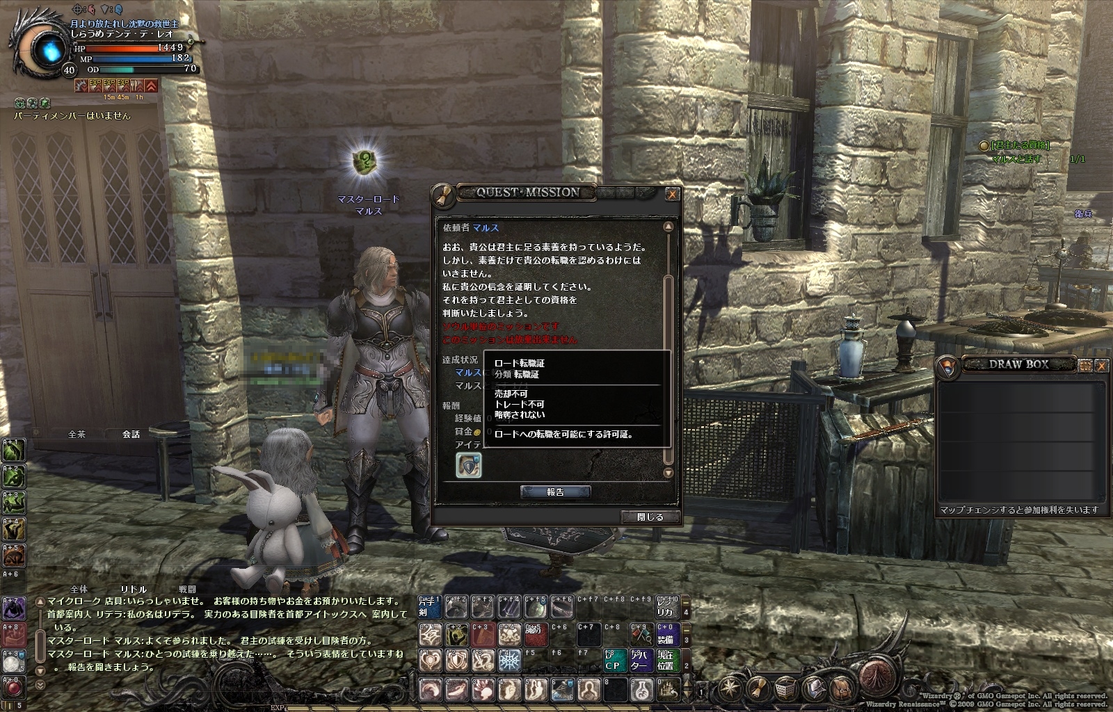 そんなデンテ君、かつてはサブアカウントの露店キャラでしたが、現在はなんと、
