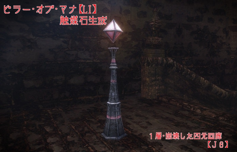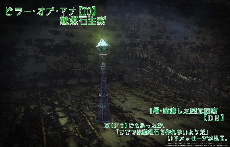 マナの残留塊は、廃墟内のMOBが落とします。