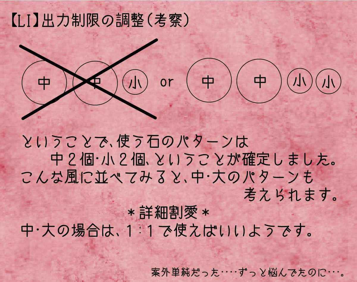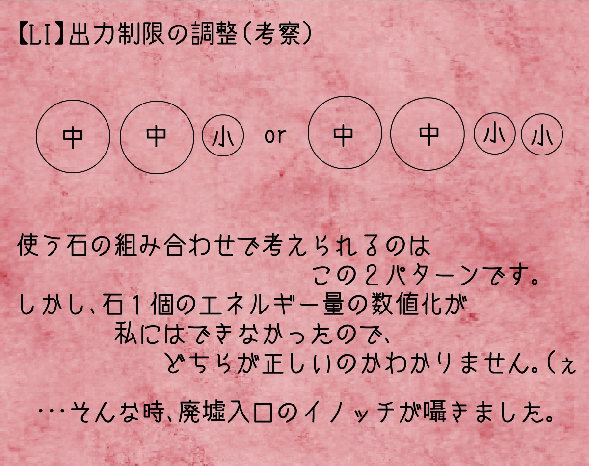 触媒石【小】6個では過剰で~とか、触媒石【小】2個は触媒石【中】1個よりエネルギー量がすくなくて~とか手順に書かれていた条件をまとめてみました。