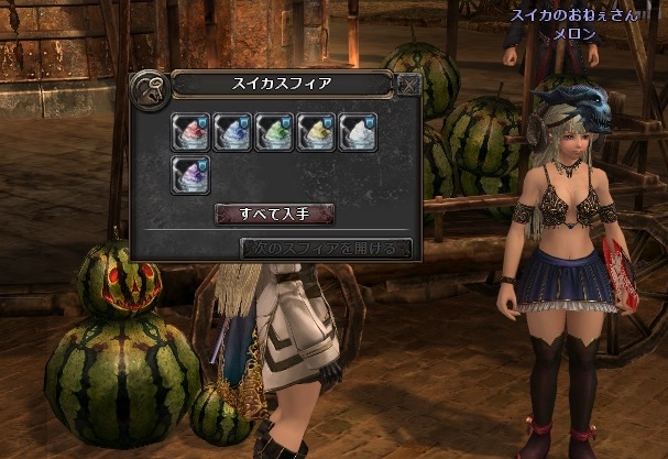 射的で手に入れた黄色いアイツとスイカスフィアを交換してくれます。