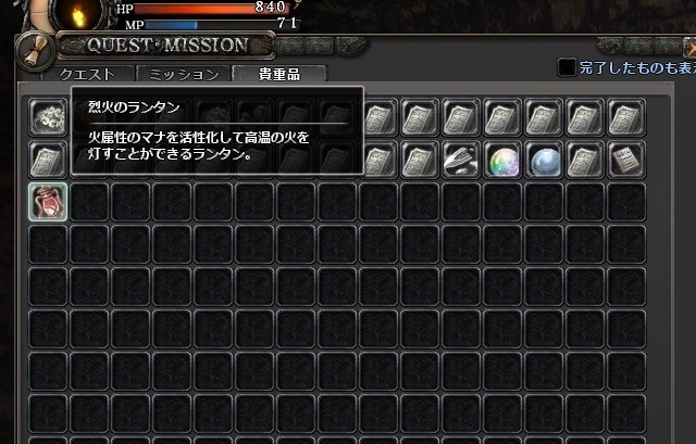 貴重品の烈火のランタンですが、かなりアイコンがいい感じです。結構貴重品は見てて面白い
