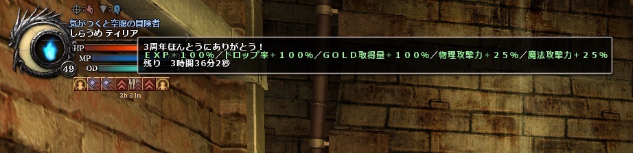 こちら。3周年での「巨大兎討伐イベント」にて、その場にいたプレイヤー全員につけられたバフです。